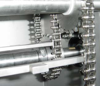 这台食品包装机械由两条相互平行的链条驱动,采用ETP-EXPRESS R联轴器后,诸如调节链条间的相对位置、链轮在轴上的位置等操作都变得十分方便,因为只需动一粒螺丝就可完成所需的操作。