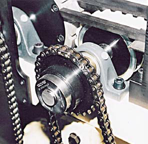 在某些弹簧设备中,它有两个同步的链轮驱动,用液压胀套来带动链轮。由于每个链节的磨损程度不尽相同,需定期对其检修,由于该液压胀紧套只需一个螺丝从径向操作,故使得这类检修变得很容易。