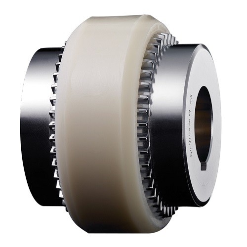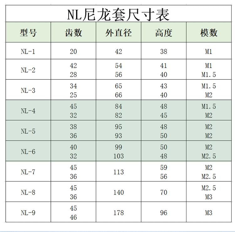 NL型尼龙内齿联轴器按照GB3852-83《联轴器轴孔和键槽形式及尺寸》的规定生产。是由带外齿的凸缘半联轴器和齿数相同的尼龙齿圈等零件组成(NL尼龙齿圈联轴器是由三件组成的,联轴器=电机半外齿块+尼龙套+泵半外齿块),带外齿的凸缘半联轴器置于带内齿的尼龙齿圈中,主动端齿面对尼龙齿圈的轴向作用力带动从动端,以实现传递运动和动力。
