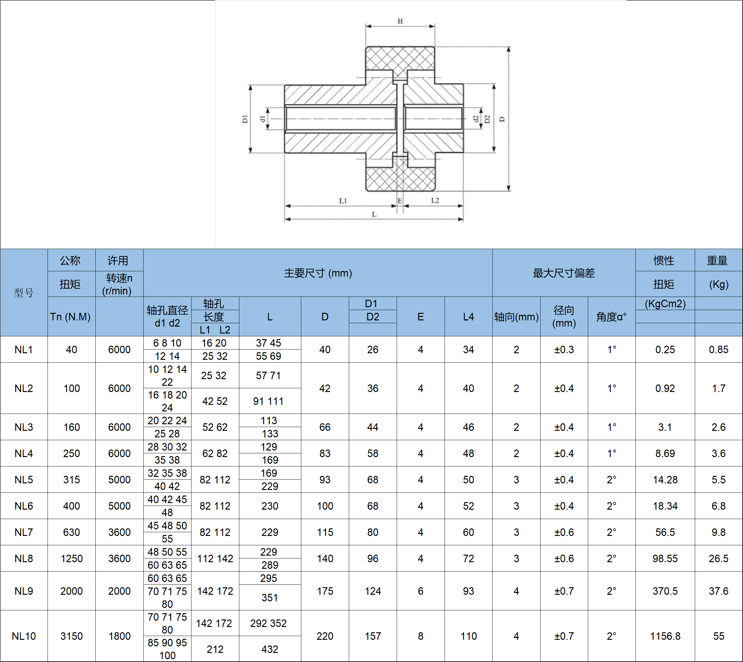 2、半联轴器采用精密铸造,铸铁HT20-40、铸钢ZG35Ⅱ,轴孔和键槽采用拉制成型。内齿形弹性体外套可根据用户使用要求选用各种硬度的合成橡胶,聚氨酯胶及增强型尼龙弹性体等材料,工作温度-35~100℃。