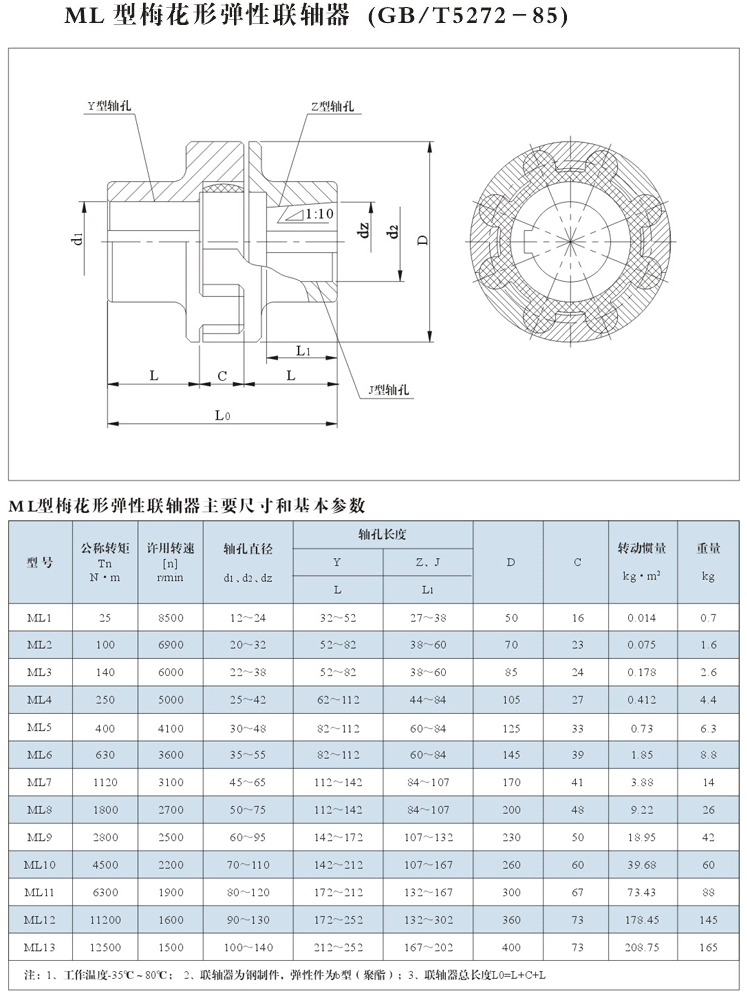 ML梅花形弹性联轴器特点