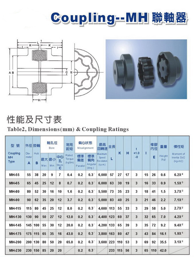 MH/CC芯型联轴器橡胶材料NBR具有优异的耐油性,性能与TM、ACM和氟橡胶相当,具有良好的耐磨性,耐热性,耐老化性和气密性以及基本的酸碱抵抗性。其工作温度为负40度到120度。